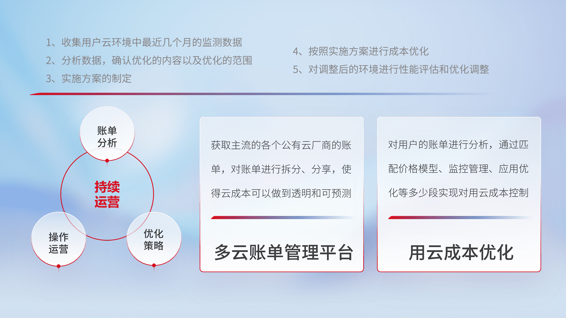监控业务系统资源开销,,,,对资源的消耗精确计量,,,实现费用的透明化管理,,,,不断提升资源使用率,,,调整资源购买方式,,,,降低资源费用成本,,用云成本可预测、、用云费用可优化,,,云资源配额有据可依。。